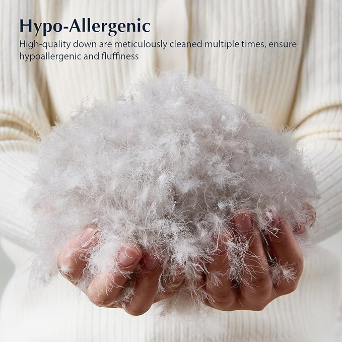 - Hypo-Allergenic: One of the most important and expensive components of our luxury down bedding is the cleaning process. Our bed pillow's down is ethically sourced and certified by RDS and OEKO-TEX Standard 100 and multiple washed to guarantee a cleaner, longer-lasting loft.