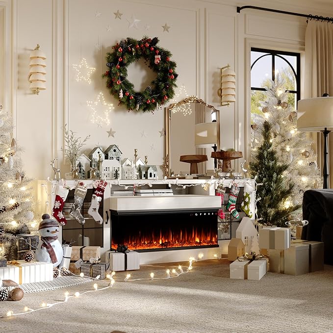- 【3-Side Glass Display】:Panorama fireplace allows you to enjoy 12 realistic flame colors and 5 levels of dimmer atmosphere from any seat in the room. Even on the sides, the glass surface allows you to admire the generous 4.3" wood log. Ideal for 400 SQ. FT. spaces, maintaining the cozy temperature between 64°F to 82°F. Enjoy low noise and a long-lasting 50000-hour lifespan.
