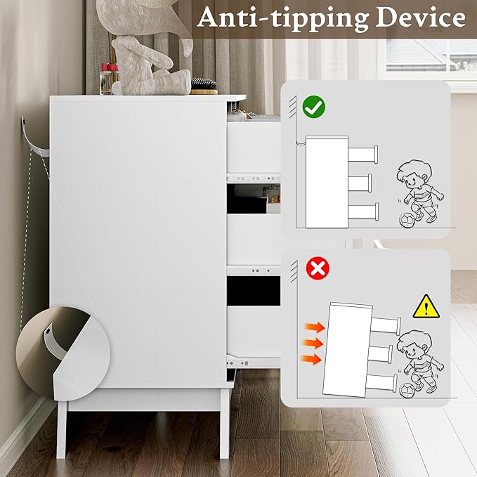 - 【STABLE & DURABLE】Anti-tipping device adds extra stability for wood dresser and protect your family from unexpected injuries. Besides, sturdy wood legs structure provides sufficient support for daily use, ensuring boho dresser is reliable and sturdy. With sliding rail smooth-gliding and independent, you can push in and pull out drawers easily and quietly.