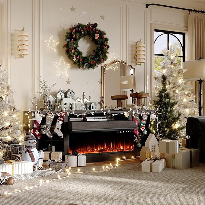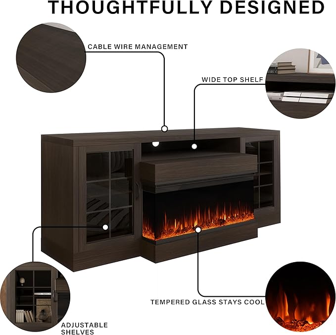 - 【Protruding Design】:The middle part is suitable for 30” fireplace. If you don't want to place a fireplace, this is an excellent location for storing wine, books, and potted plants. Rich storage space to meet your diverse needs.