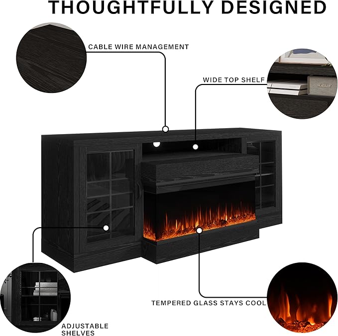 - 【Protruding Design】:The middle part is suitable for 30” fireplace. If you don't want to place a fireplace, this is an excellent location for storing wine, books, and potted plants. Rich storage space to meet your diverse needs.