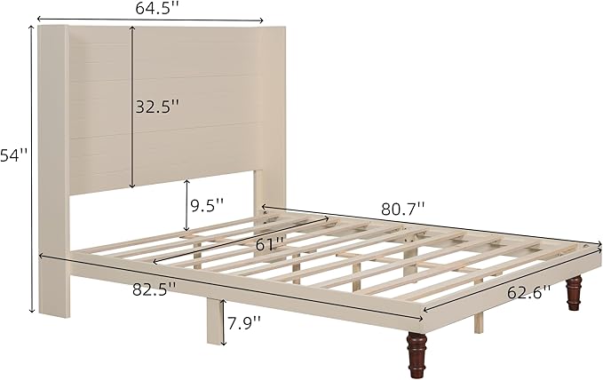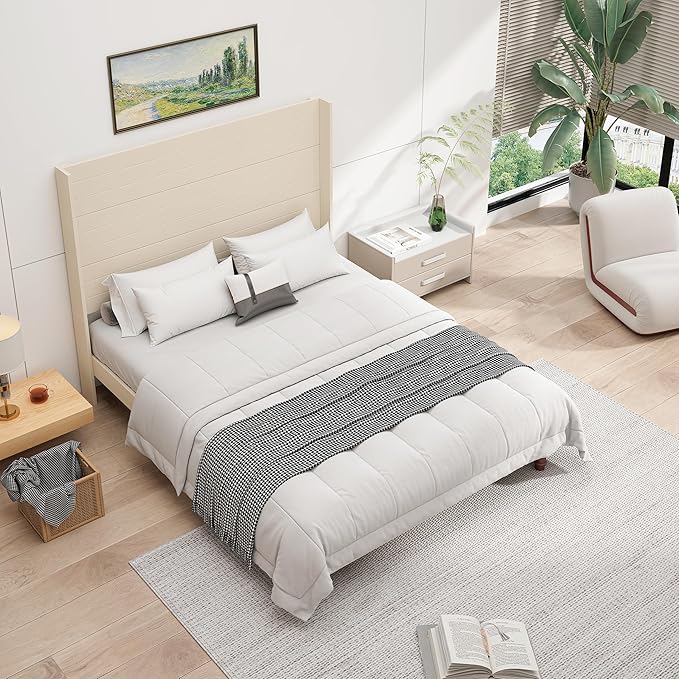 GDFStudio Tall Headboard Queen Size Bed,Platform Bed Frame with High Back,Wooden Slat Mattress Support No Box Spring Needed Easy Assembly Minimalist Designs 54" H Beige