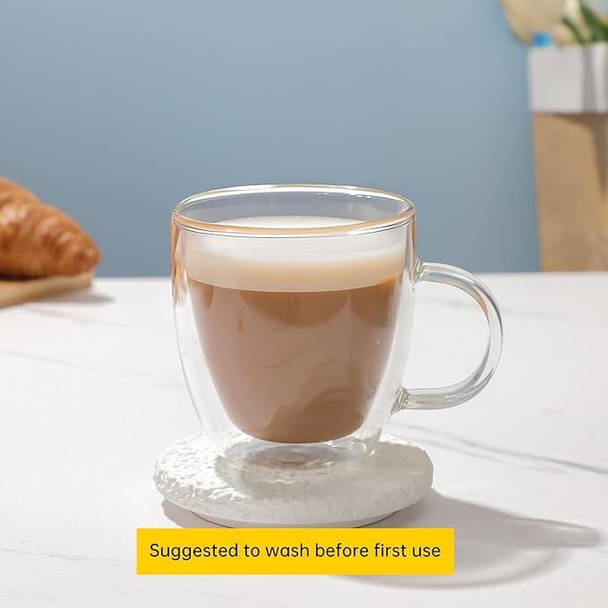 - 2 Pack 15 Oz Double Walled Glass Coffee Mugs with Handles, Large Insulated Layer Coffee Cups, Clear Borosilicate Mugs, Perfect for Cappuccino, Tea, Latte, Espresso, Hot Beverage, Wine, Microwave Safe: Double wall design, effectively keep hot and cold drinks for a long time, and prevent condensation from forming on the outer wall of the cup.
