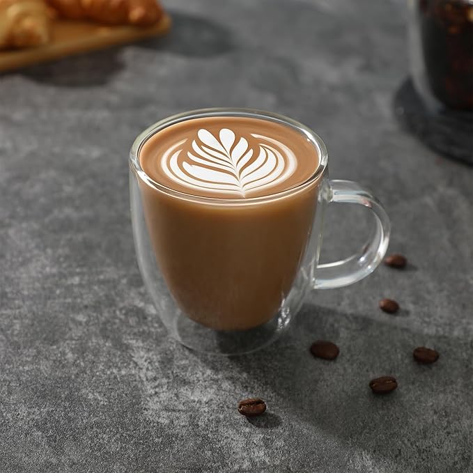 Aurzen 2 Pack Double Walled Glass Coffee Mugs with Handles, Large Insulated Layer Coffee Cups, Clear Borosilicate Mugs, Perfect for Cappuccino, Tea, Microwave Safe (5oz-2Pack B)