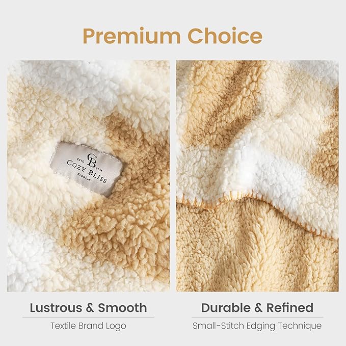 Cozy Bliss Ultra Soft Reversible Double Sherpa Sided Blanket, Buffalo Plaid Throw Blanket Fluffy Thick Warm Plush Fuzzy Blanket for Couch, Bed and Gifts (Beige, 60" x 80")