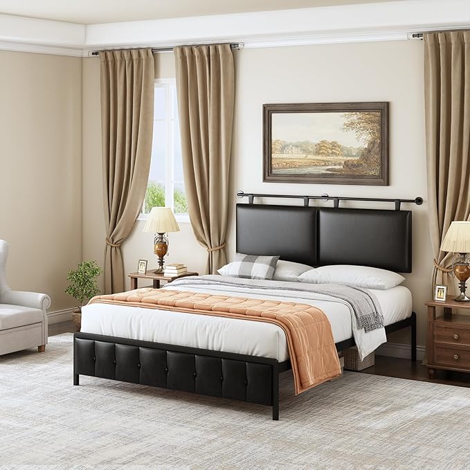 - 【Premium Quality and Easy Installation】Crafted with high-quality black Faux Leather, our headboard offers a luxurious and vintage feel, Get a wonderful time by simple installation! The adjustable headboard comes with detailed instruction, assembly tools and numbered parts, Just follow the steps in the instructions to install the screws,assembly can be done within 10 minutes