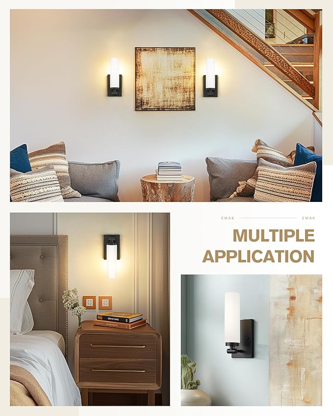 - [Modern Elegance for Your Home] Featuring a sleek black finish and clean, minimalist lines, the EMAK wall sconces set of two effortlessly enhances any decor, from stylish city apartments to cozy suburban homes. It's more than just lighting—it's a statement piece that brings timeless charm to your space.