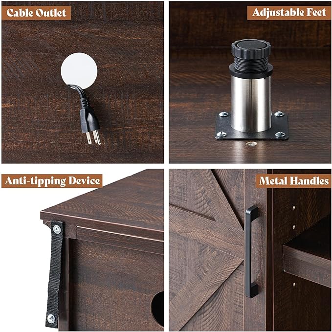 - 【2 Sliding Barn Doors】Easily conceal side cabinets or center shelves with smooth-gliding barn doors. X-shaped design enhances rustic charm, while sturdy rail ensures durability and effortless movement