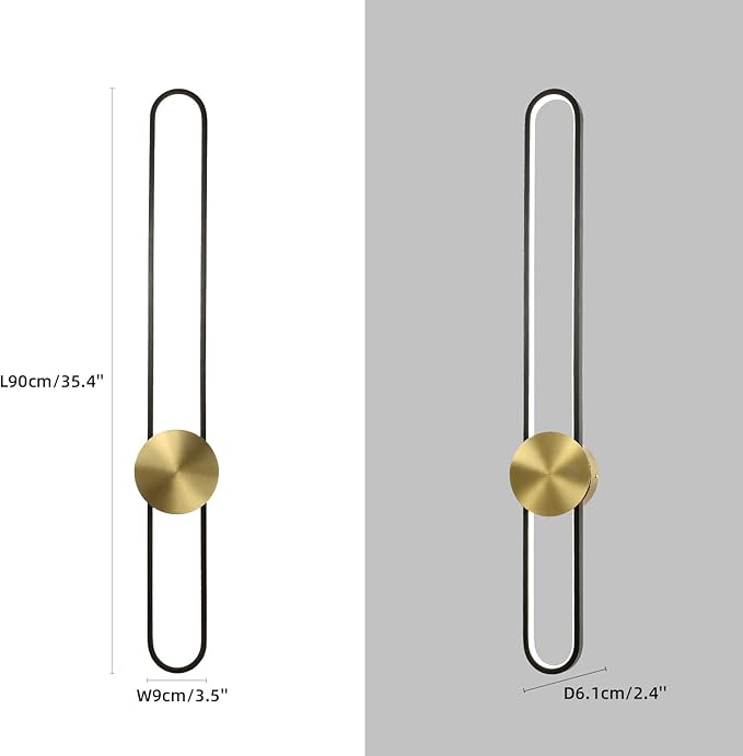 - Sleek Contemporary Design: JAYMP Modern wall sconce crafted with chic geometric lines and premium brushed & electroplated copper color finish, this dimmable wall lamp enhances the texture of the space. Choose from brushed black/gold to complement modern interiors.Dimensions is 35.4 × 5.1 inch.