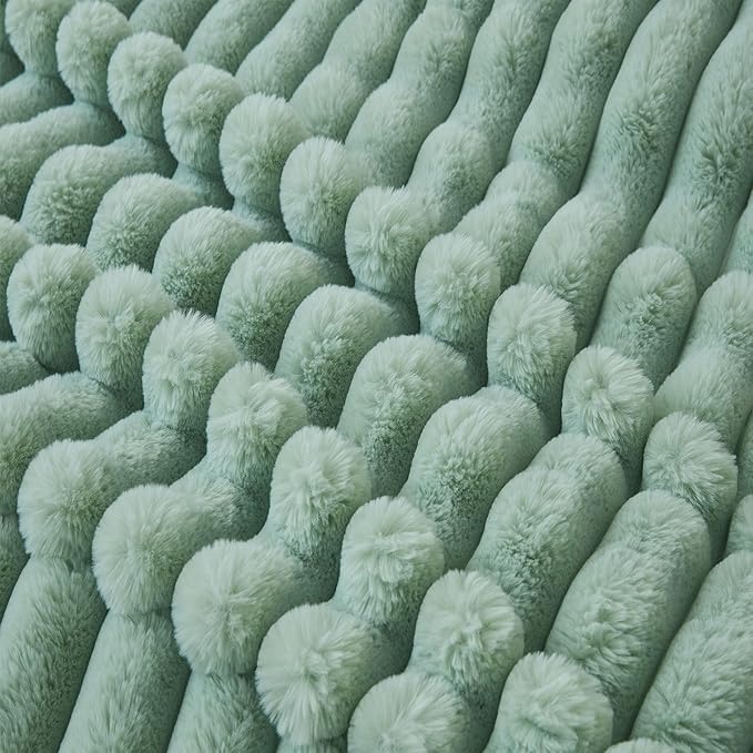 Faux Fur Throw Blanket for Couch, Cozy Warm Plush Striped Blanket for Sofa Bedroom Living Room, 50x60 Inches Sage Green