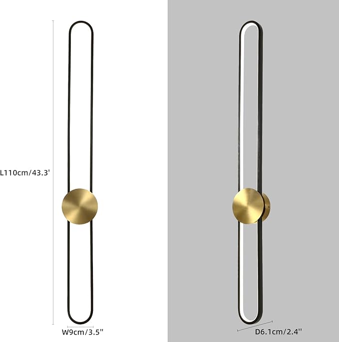 - Sleek Contemporary Design: JAYMP Modern wall sconce crafted with chic geometric lines and premium brushed & electroplated copper color finish, this dimmable wall lamp enhances the texture of the space. Choose from brushed black/gold to complement modern interiors.Dimensions is 43.3× 5.1 inch.