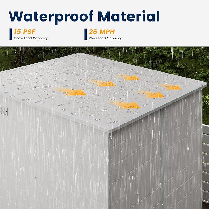 - STURDY STRUCTURE: Our outdoor storage room is equipped with a sturdy structure that can protect the stored items from the threat of rain and mold, while the lockable doors also provide security for your property
