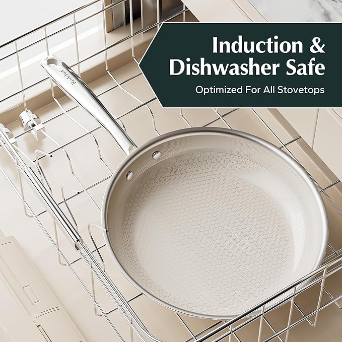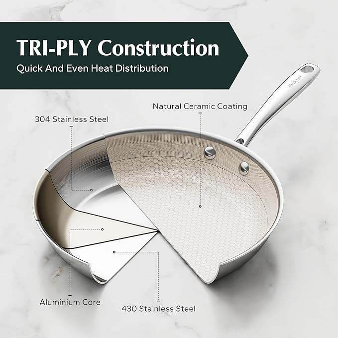 - Superior Durability: Redchef Nonstick Frying Pans feature a tri-ply construction – aluminum between two layers of stainless-steel; This ensures even heat up quickly, easy food release; And features a hollow handle that stays cool and won't overheat on the stovetop