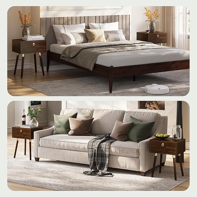 - COMPACT DESIGN FOR ANY SPACE: Modern wood nightstand offers space-saving design, making it ideal for bedrooms, living rooms, or dorms; Whether used as a mid century modern end table, walnut side table, or wood bedside table, this acacia nightstand blends effortlessly into any setting