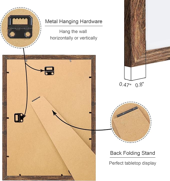 - Multiple Display:10 by 14 photo frames come with hanging hardware, which can be hung on the wall, or displayed on the tabletop through the stand