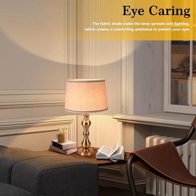 - 【Versatile Home Lighting】 With its calssic design, this tall table lamp is suitable for decorating any corner of your home, especially in the bedroom, living room, study room, kids' room, nursery, office, or dorm. Featuring a beige linen shade and a brass gold metal base, this bedroom lamp is an ideal Christmas gift for your family and friends.