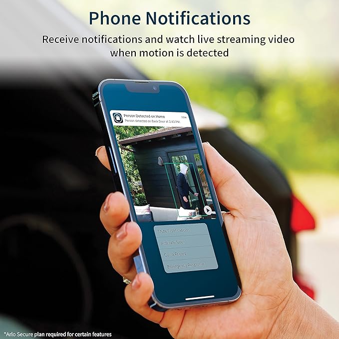 - Don’t miss a moment with the Arlo Secure App - Real-time notifications with motion activation & live video streaming in the Arlo app. Includes activing the siren remotely, Color Night Vision (Night Vision on Doorbell), large Field of View.