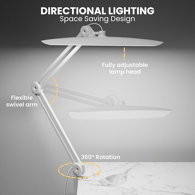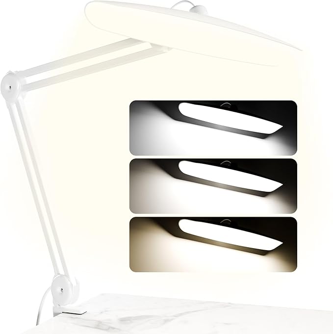 3000 Lumens Adjustable LED Desk Lamp & Task Lamp - Bright, Dimmable Lighting for Office, Crafts, Nails &Salon Hobbies with Clamp (CCT, White)