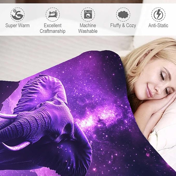 Elephant Throw Blanket, Elephant Gift for Women Men, Fleece Purple Print Pattern, Soft Plush Lightweight for Couch, Sofa, Bed and Living Room Decor, 60x80 inches