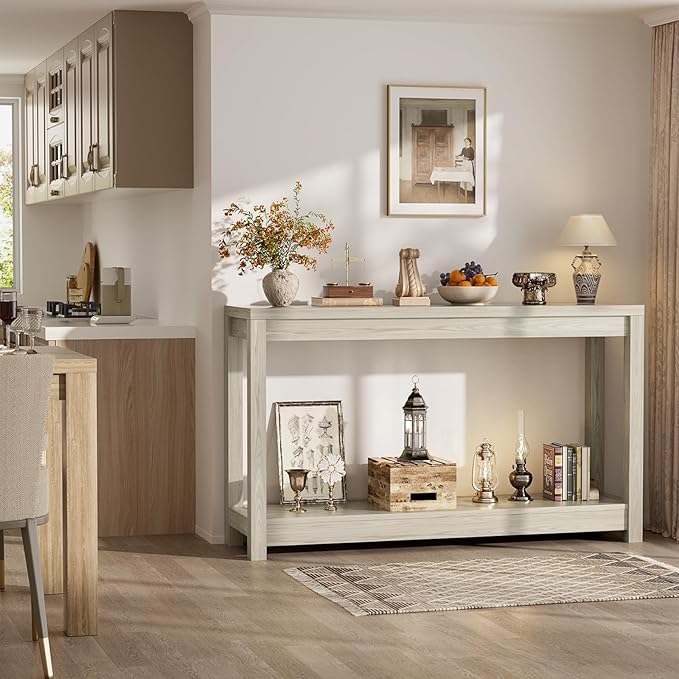 - Simple and Elegant—Besiost farmhouse console table with storage features simple construction, which is elegant and classic to add to the entryway space. It's suitable for your mid-century modern house