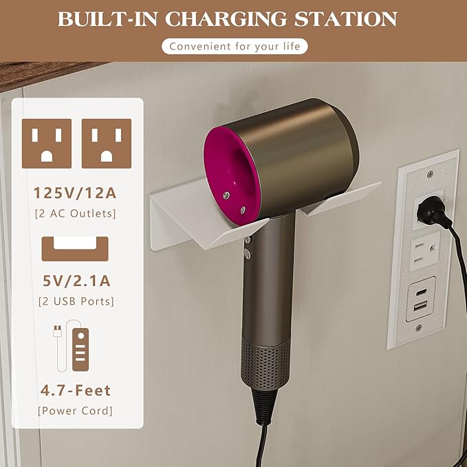 - 【Built-in Charging Station】This dressing table features a charging station with 2 standard AC power outlets and 2 USB ports, allowing you to use a hair dryer and easily charge electronic devices while doing makeup