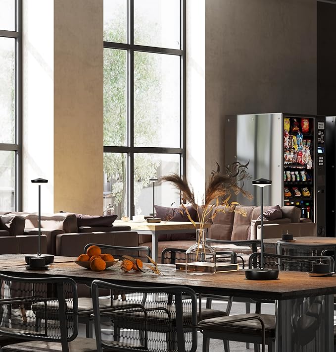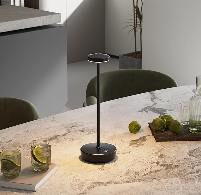 - Stylish & Versatile Design: Sleek modern design enhances any space; durable aluminum alloy body; weighted base with non-slip pads for stability; rechargeable cordless operation for indoor/outdoor flexibility; suits restaurants, cafes, patios, and home decor