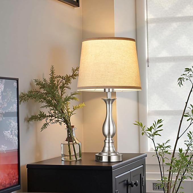 - 【High Grade & Elegant】Our bedside table lamp is made of a sturdy brushed nickel metal base and high-quality linen lampshade, which is retro, elegant, perfectly matching with retro and modern home decor, making it the ideal lighting desk lamp for villa and farmhouse