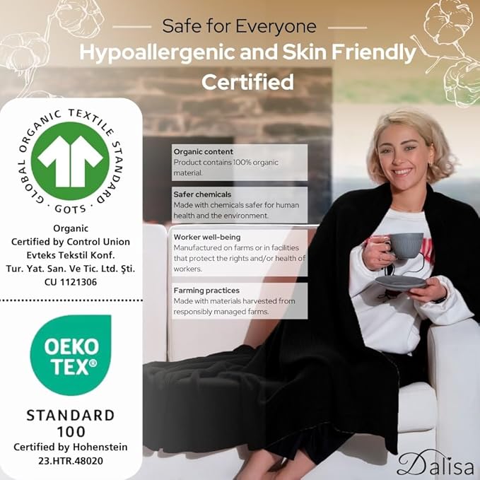 - [LUXURIOUS 100% ORGANIC TURKISH COTTON]: Experience the ultimate comfort with our GOTS certified organic cotton blanket, offering a premium, eco-friendly option for your home.