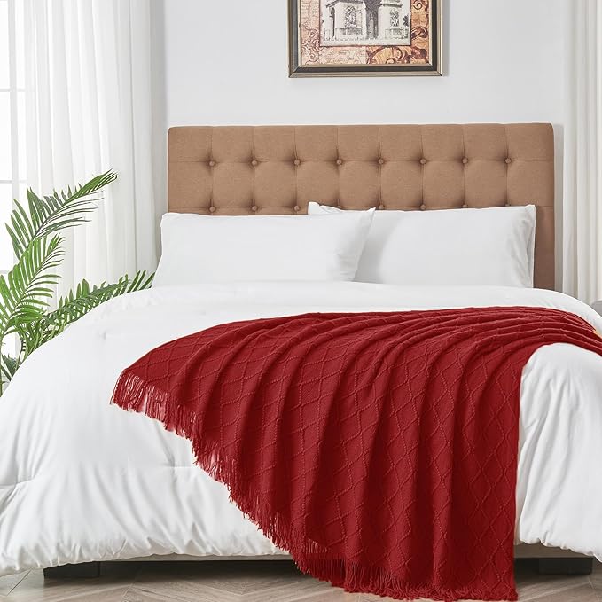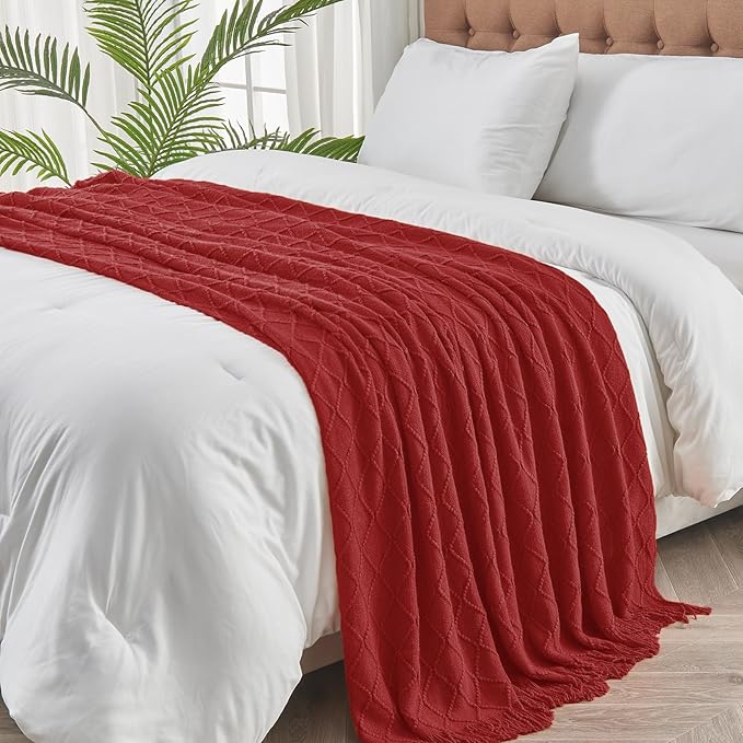 - 【FANTASTICAL COMBINATION】: Decorative blankets and throws ,nice raised diamond shape knit design and well-arranged fringes. It's couldn't be better to decorate your home for Christmas, Thanksgiving, and other holidays. A good cozy blanket is a combination of the right price, satisfactory adaptability, and lovely design.