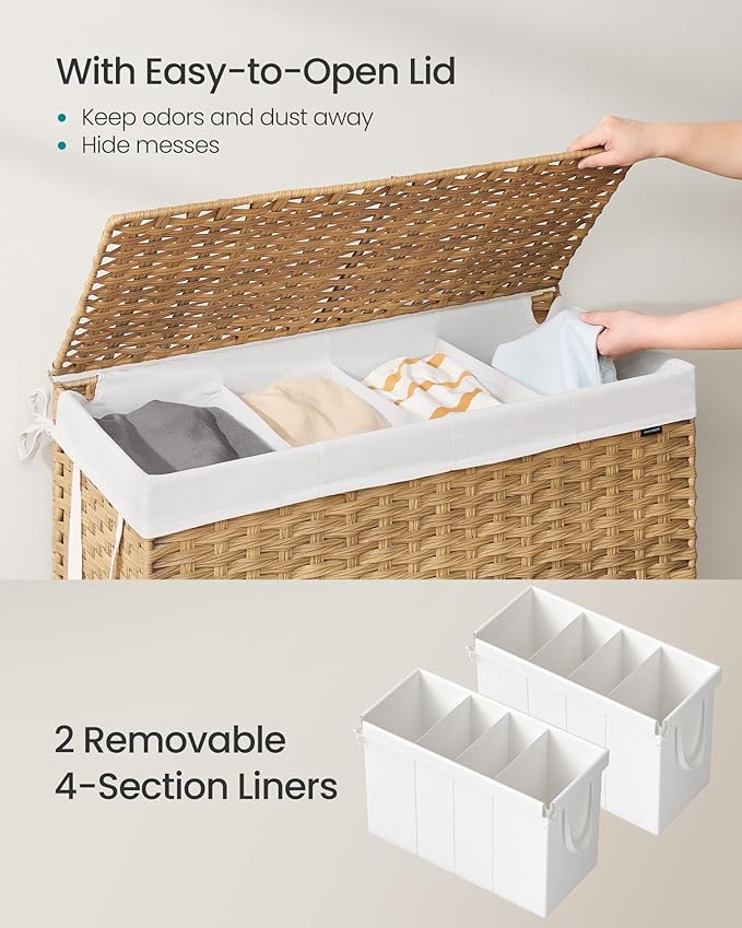 - [With Lid and 4 Sections] The lid keeps odors in the laundry basket and dust out. If needed, you can open it up with a single hand; the 4 sections sort your clothes into darks and whites prior to laundry day