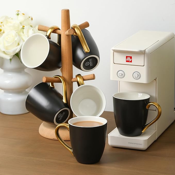 vicrays Coffee Mug Set, 11 Ounce, Set of 6, Ceramic Mug for Men, Women, Unique Glazed Mugs with Handle for Coffee, Tea, Milk, Cocoa, Cereal(Black with Golden)