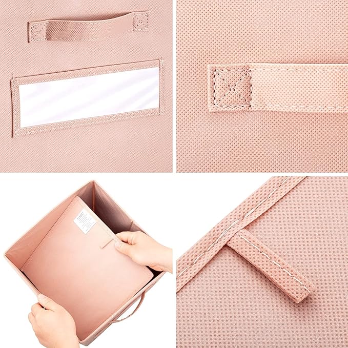 artsdi 13x13x13 storage cube bins(Set of 10) Fabric storage cubes with 10 Labels Window Cards & a Pen, storage cubes 13x13, Collapsible 13 inch cube storage bins, Cubby Organizer Boxes, Pink