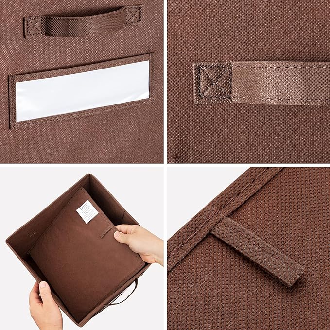 artsdi 13x13x13 storage cube bins (Set of 10) Fabric storage cubes with 10 Labels Window Cards & a Pen, storage cubes 13x13, Collapsible 13 inch cube storage bins, Cubby Organizer Boxes, Brown