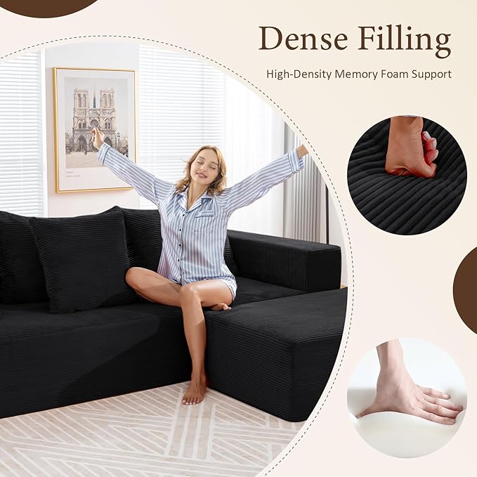 - 【Effortless Setup】Our no assembly required couch arrives compressed and expands into a plush cloud couch no assembly in minutes. Zero tools needed for this minimalist sectional couch for apartment living room luxury