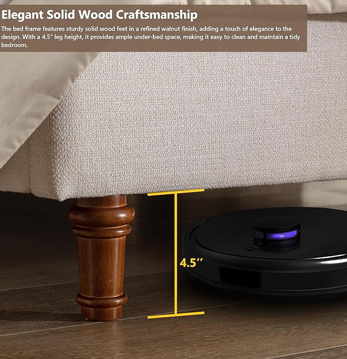 - 5. Elegant Solid Wood Feet with Walnut Finish Solid walnut-finished wood legs complete the premium look, offering lasting support, easy cleaning access, and a graceful accent to any bedroom decor.