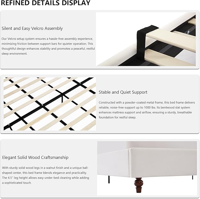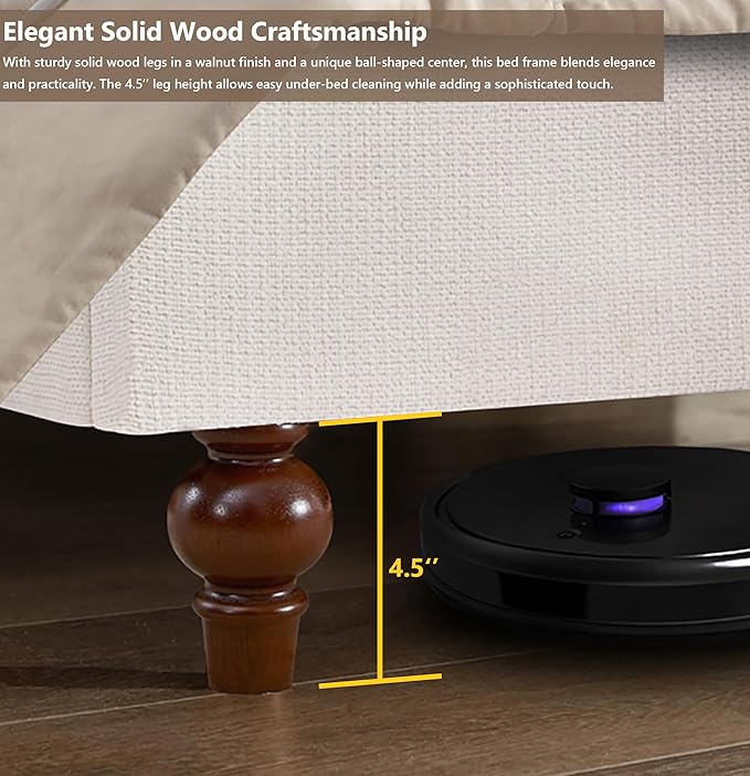 - 4. [No Box Spring Needed Bed] — Solid Walnut-Finished Wood Legs Real wood legs in a rich walnut finish elevate the look of your room while offering extra strength and stability for years of reliable use.