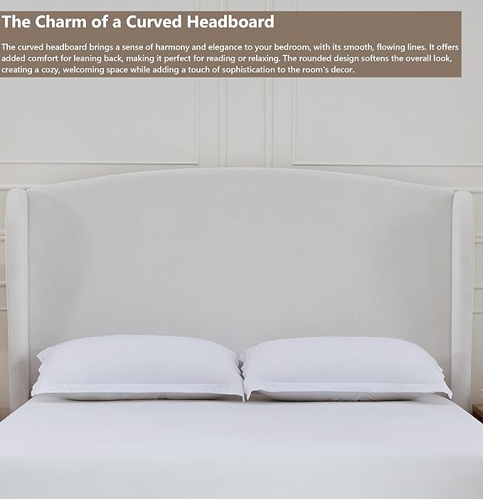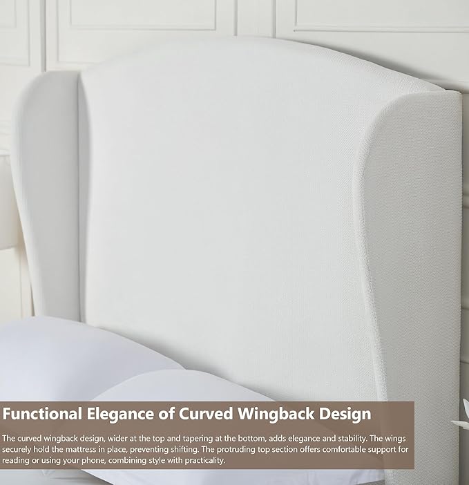- 1. [King Size Bed Frame] — Elegant 54" Camelback Wingback Headboard Create a luxurious centerpiece with this king-size upholstered bed, featuring a tall 54" camelback design and soft curved wingbacks for a refined, cozy atmosphere.