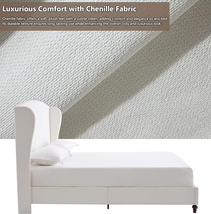 - 2. [Chenille Upholstered Bed] — Soft, Durable, and Stylish Fabric Premium textured chenille fabric offers superior comfort and lasting durability, resisting daily wear while adding a sophisticated touch to any modern or traditional bedroom.