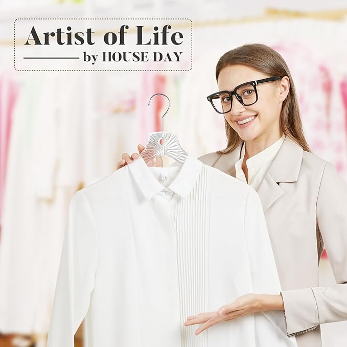 - Plastic Clear Hangers Set: Ditch those boring black or white hangers. HOUSE DAY crystal design clear plastic hangers for clothes adds a touch of modern elegance to any space. Perfect for organizing everything from coats and dresses to suits and youth' jackets, making your clothes look even better