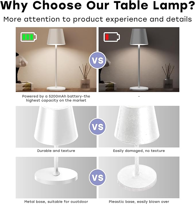 - Wireless Freedom & Portable Design: Equipped with a 5200mAh rechargeable battery, our lamp allows you to use it while charging. Ideal as an emergency light during power outages, this cordless design combines functionality with modern style, fitting effortlessly into any space. Compact and lightweight, it enhances your home’s ambiance with a sleek and tasteful aesthetic.