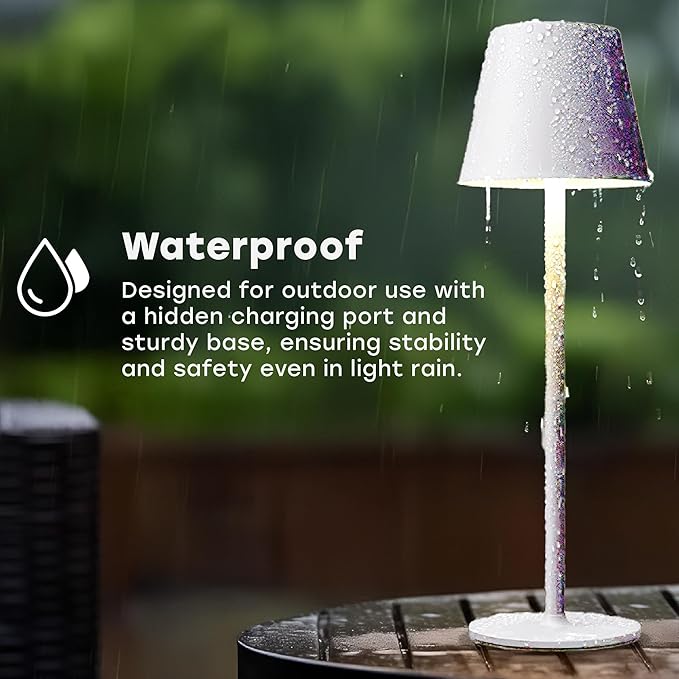 - Customizable Lighting Options: Adjustable color temperatures from 2700K to 6000K include warm light, neutral white, and bright white options. Seamlessly dim the brightness from 5% to 100% with intuitive touch controls—tap to change light modes or press and hold to fine-tune the brightness. Perfect for creating a cozy or lively atmosphere, whether indoors or during outdoor gatherings.