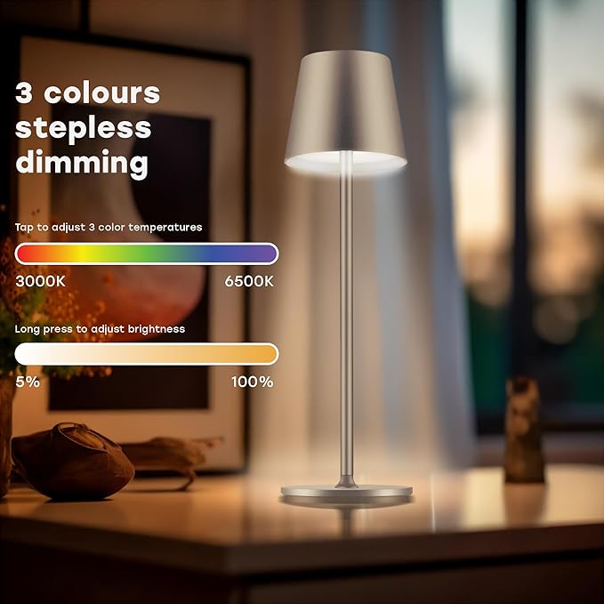 - Wireless Freedom & Portable Design: Equipped with a 5200mAh rechargeable battery, our lamp allows you to use it while charging. Ideal as an emergency light during power outages, this cordless design combines functionality with modern style, fitting effortlessly into any space. Compact and lightweight, it enhances your home’s ambiance with a sleek and tasteful aesthetic.