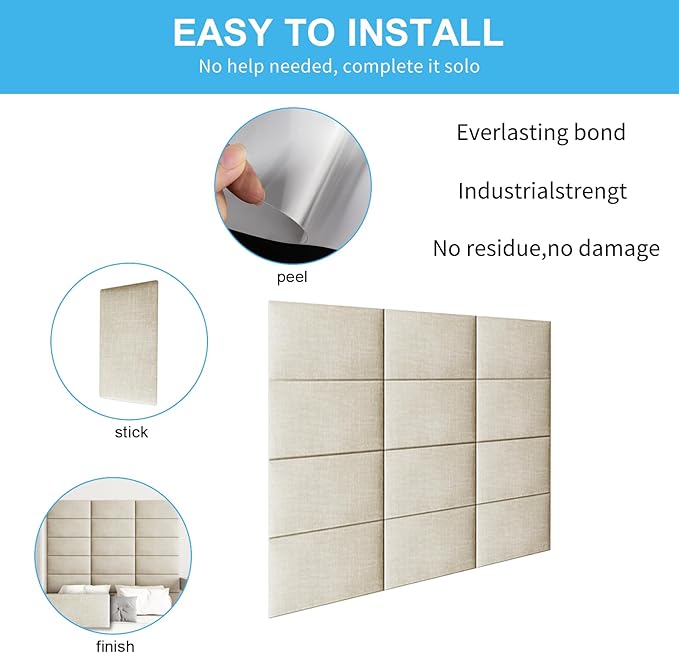 - Convenient Installation: The peel and stick headboard adopts the adhesive technology, eliminating the need for complicated operations such as drilling holes or screwing. All you have to do is to peel off the protective film of the adhesive backing, align it with the right position and press it firmly to complete the installation. Even beginners can handle it easily, saving both time and effort
