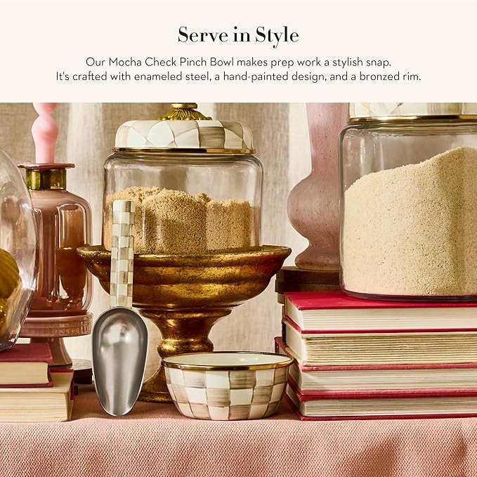 MACKENZIE-CHILDS Enamel Pinch Bowl, Small Bowl for Kitchen Ingredients, 1.5-Cup Capacity, Brown-and-White Mocha Check