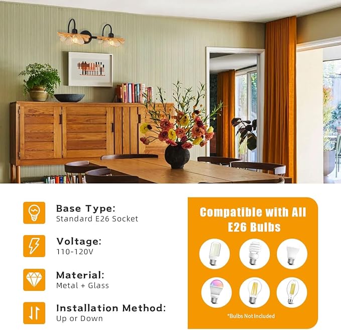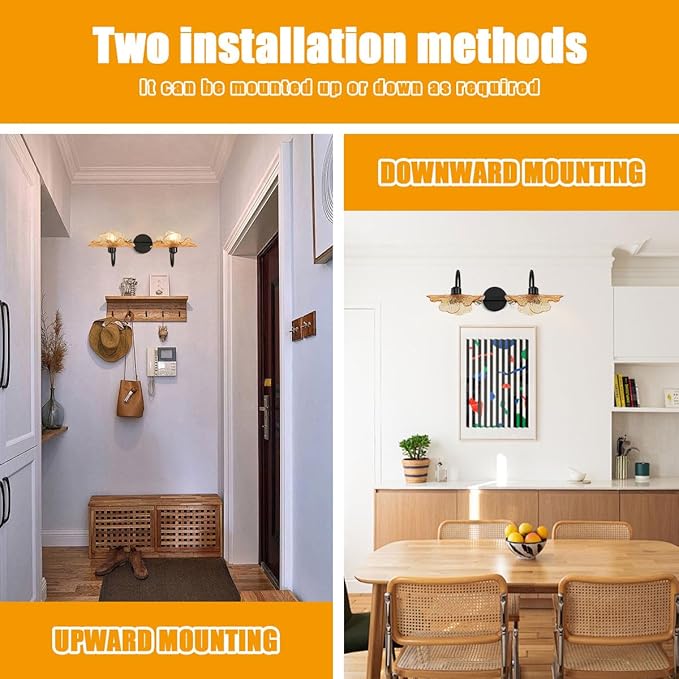 - Easy to Install-Glass bathroom lighting:Hardwired and pre-install, includes all mounting hardware, all you need to do is hardwired and screwed the glass shades and bulbs.