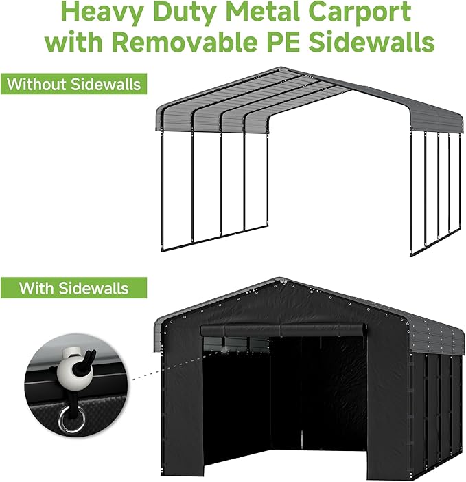 - 180g PE Sidewalls: It is wear-resistant and tear-resistant, offering excellent waterproof and dustproof performance. It effectively protects against rain, heavy snow, and sandstorms. Designed for easy installation and removal, it is also very convenient to clean, providing comprehensive protection for your carport while ensuring ease of use.