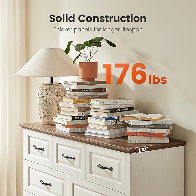 - BUILT STRONGER, LASTS LONGER: Constructed from thick, durable P2-grade particle board and MDF, this dresser has a net weight of 99.2 lbs, giving it a solid, stable feel you can rely on. The reinforced structure and thickened panels offer enhanced strength and durability, while the broad base ensures firm support. An included anti-tip kit provides added peace of mind for homes with kids or pets.