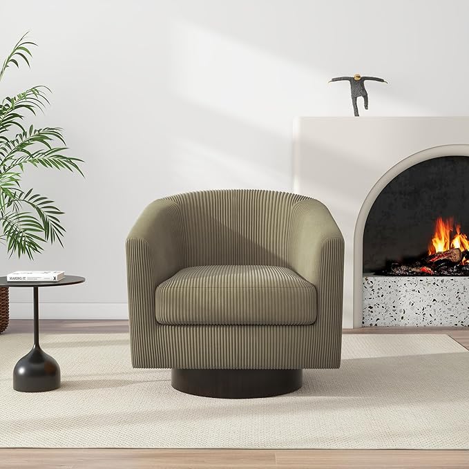 Swivel Barrel Accent Chair, Modern Round Corduroy Fabric Arm Chair for Living Room, Bedroom, Comfy Club Reading Chairs for Adults (Corduroy Camel, Set of 1)