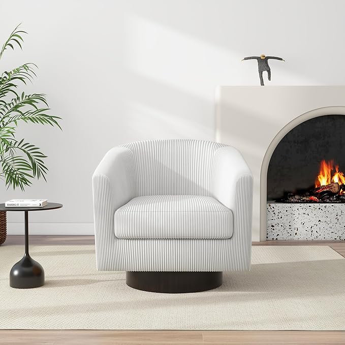 Swivel Barrel Accent Chair, Modern Round Corduroy Fabric Arm Chair for Living Room, Bedroom, Comfy Club Reading Chairs for Adults (Corduroy Beige, Set of 1)
