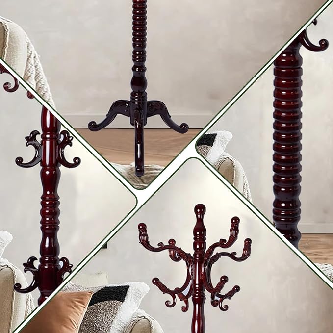 - STABLE NATURAL WOOD COAT RACK STAND:Stability is an important feature of the independent coat stands. The 16.92 "triangle base provides a solid and stable foundation for this coat rack. The force is more uniform, The heavy-duty triangle base avoids shaking or tipping over when hanging or removing heavy winter clothes or bags. sturdy coat rack stand vintage